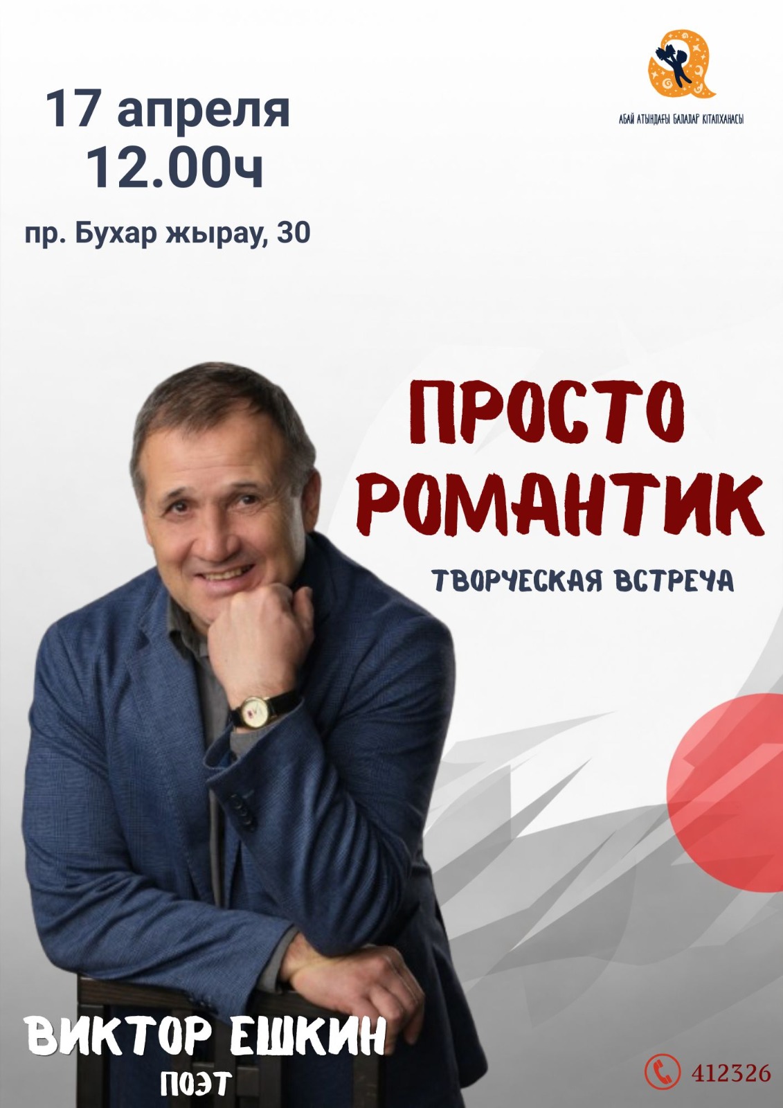 В карагандинской детской библиотеке имени Абая (пр. Бухар жырау, 30) 17 апреля пройдёт встреча со спортсменом и поэтом Виктором Ешкиным – под названием «Просто романтик». Вход для всех желающих – свободный, а начало назначено на 12.00, сообщает корреспондент ekaraganda.kz.