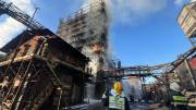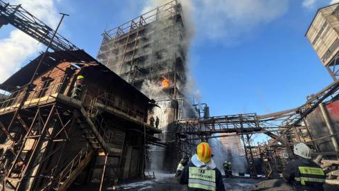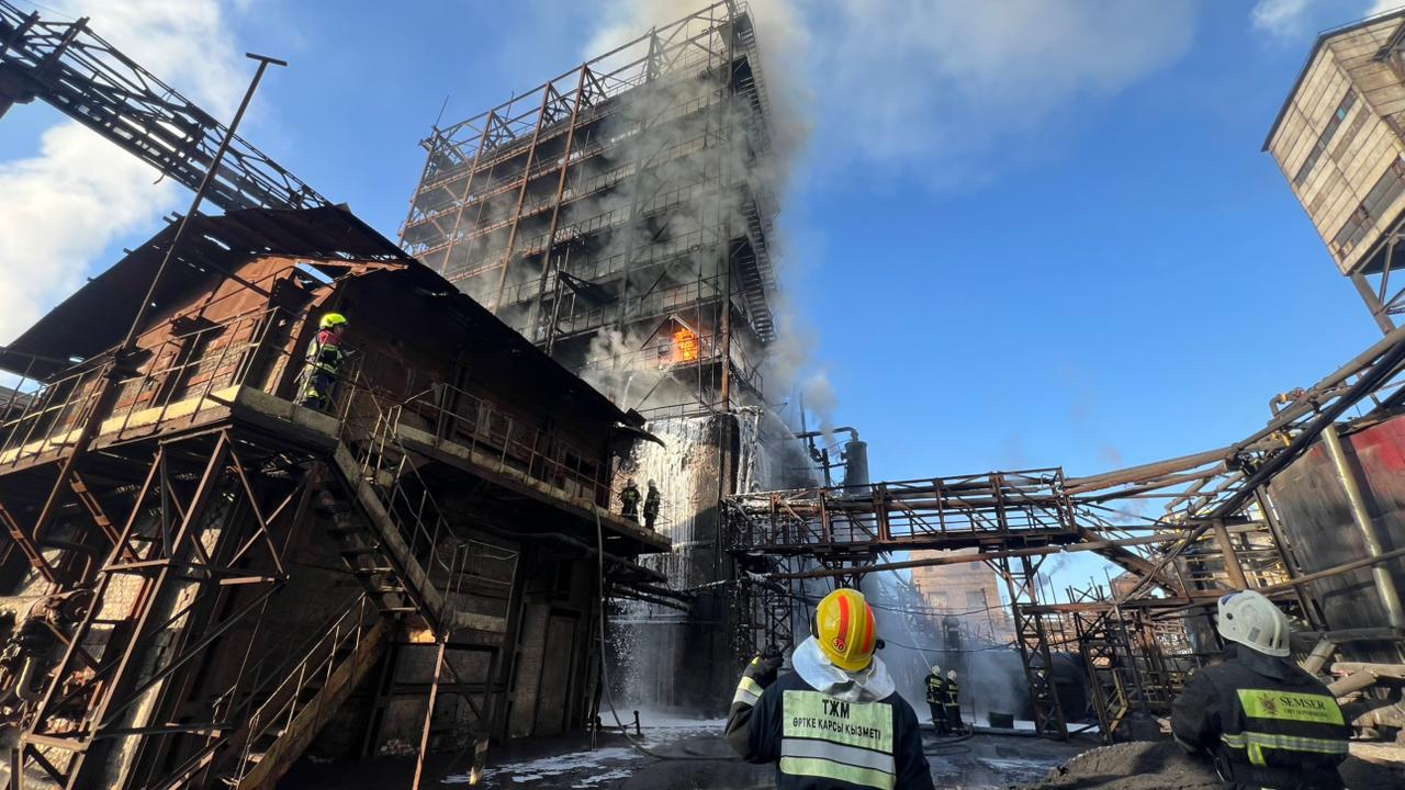 Сегодня, 20 апреля, пожар произошел в смолоперерабатывающем цехе, расположенном в Темиртау. Загорелись смола, антраценовые фракции, а также нафталиновые и масляные отложения на высоте около 10 метров.