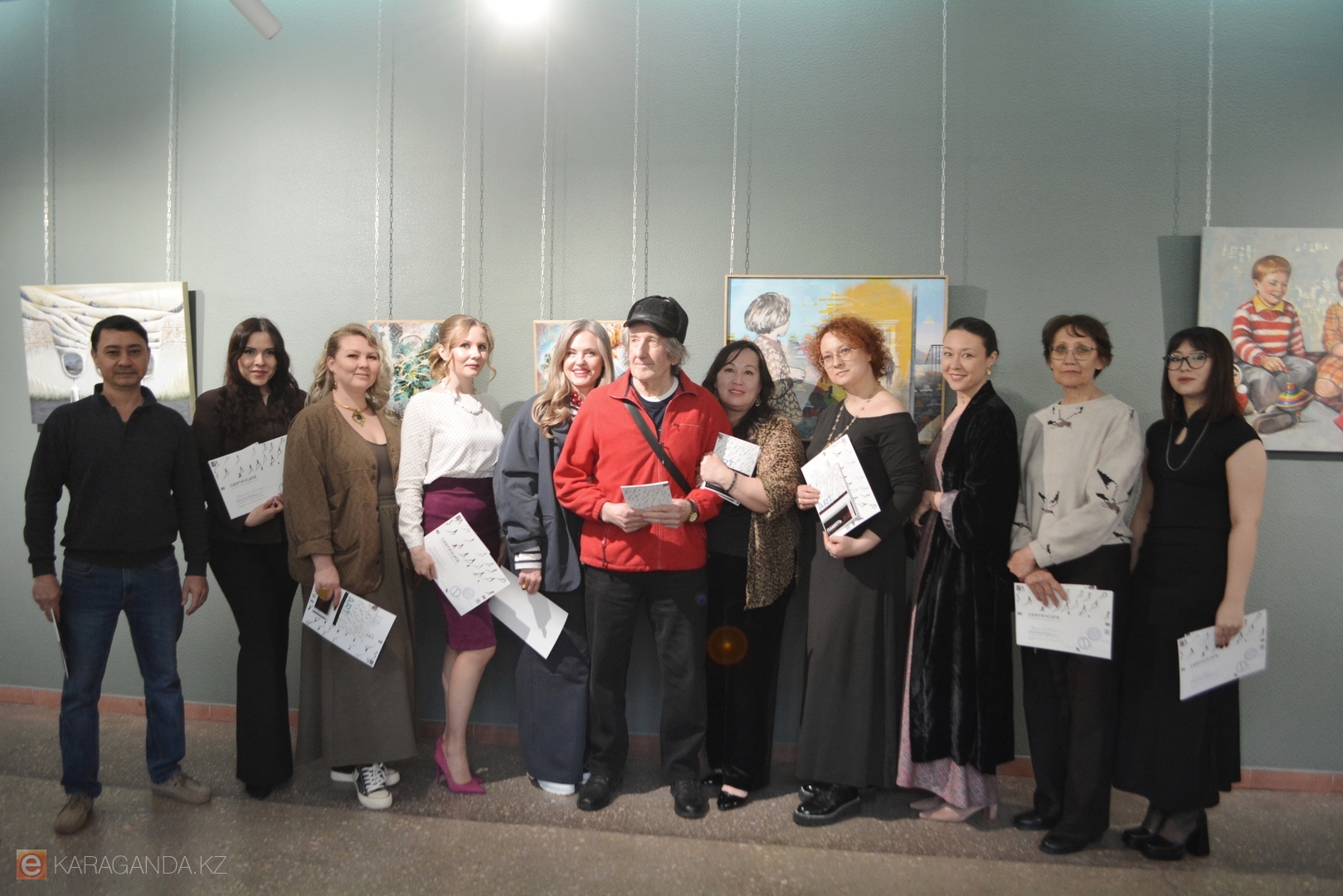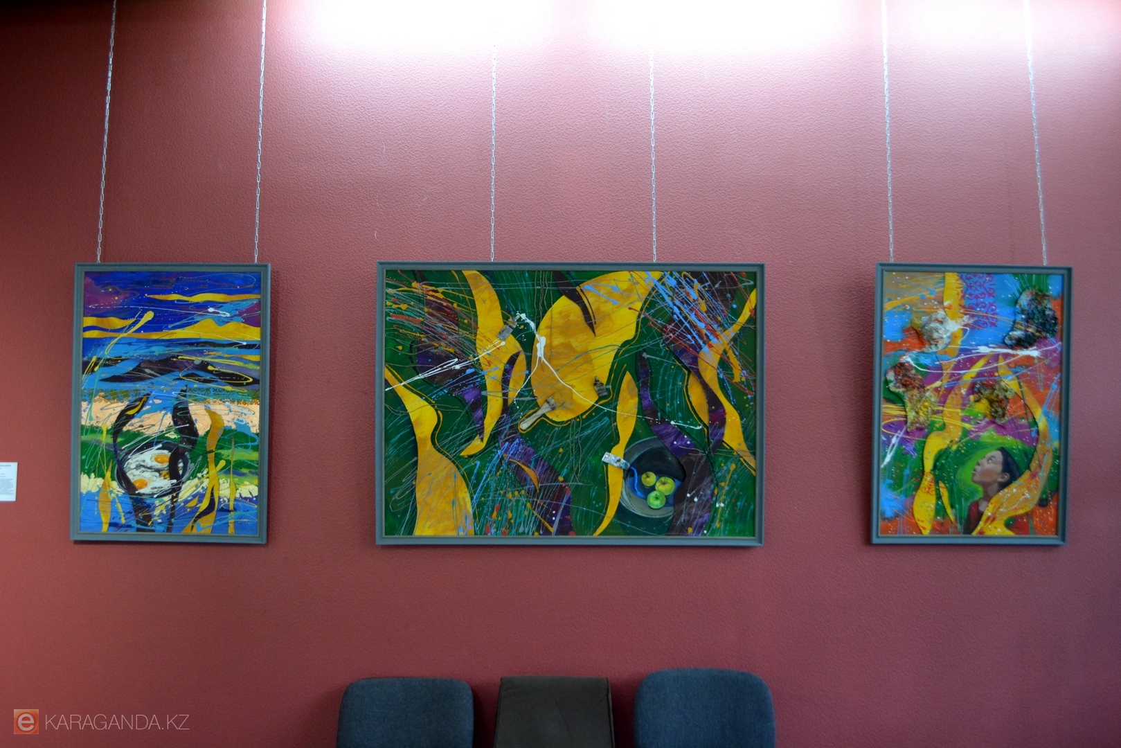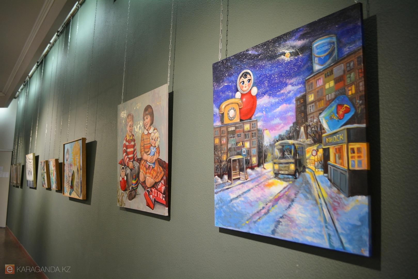 Зал украсили работы 14 авторов, среди которых известные в Караганде и за её пределами Пётр Кишкис, Мадихан Калмаханов, Евгения Казакова, а также художник из Санкт-Петербурга Роман Черенков.