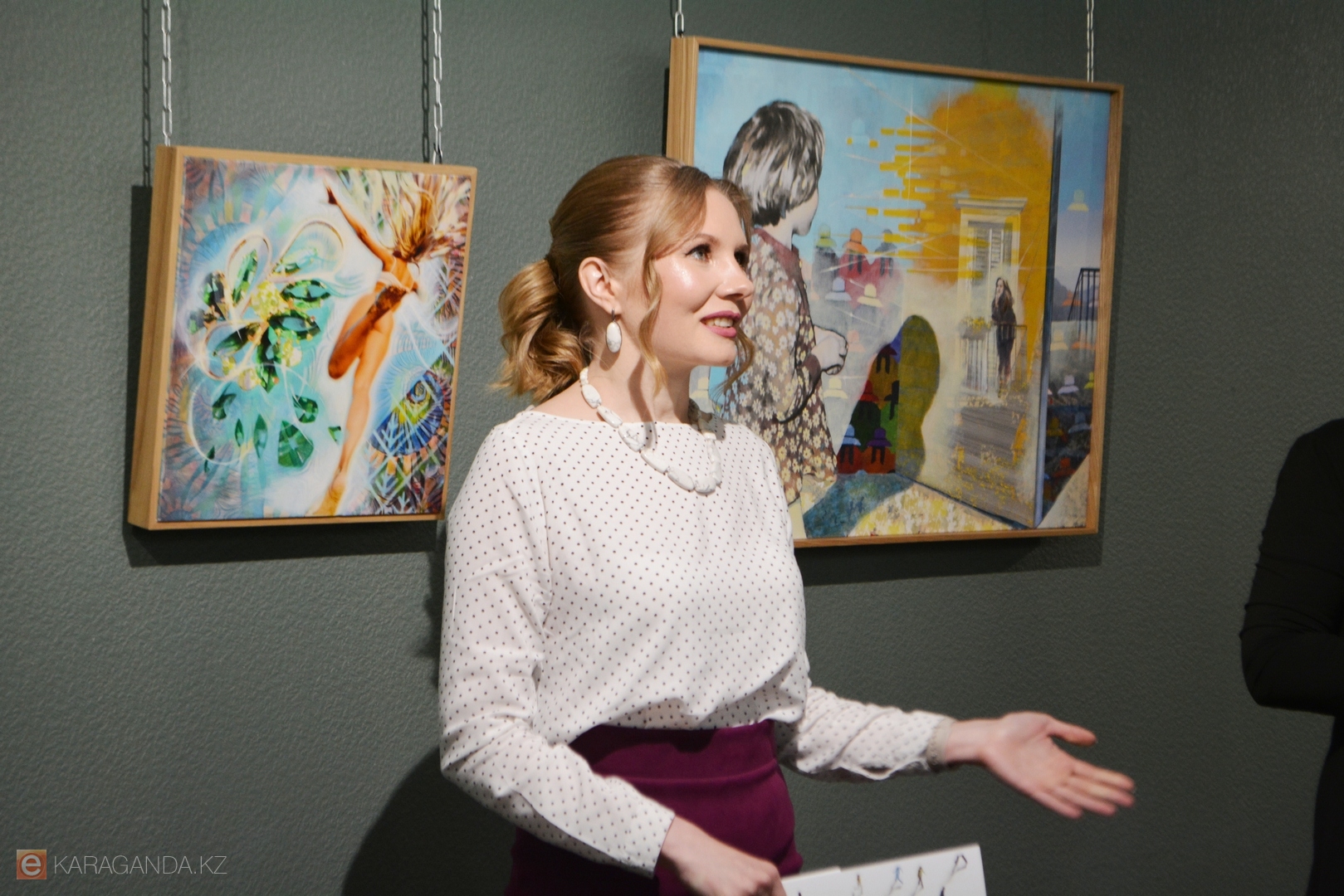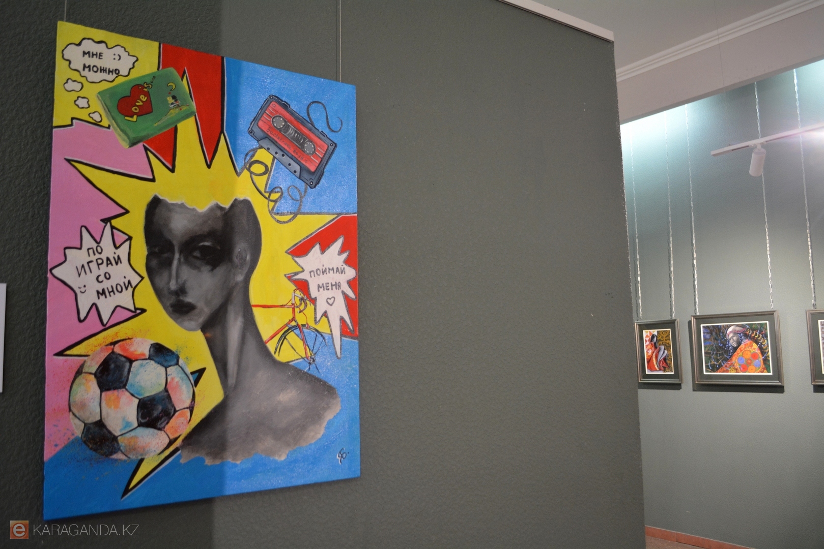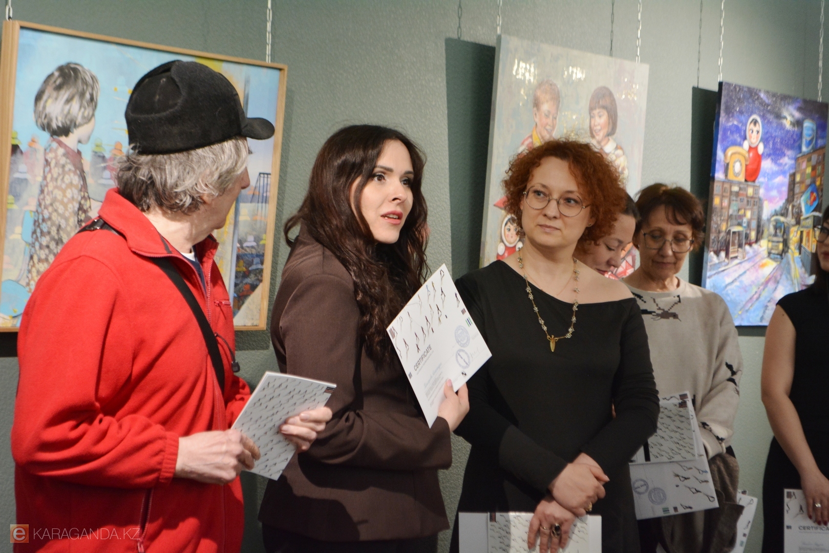 Зал украсили работы 14 авторов, среди которых известные в Караганде и за её пределами Пётр Кишкис, Мадихан Калмаханов, Евгения Казакова, а также художник из Санкт-Петербурга Роман Черенков.