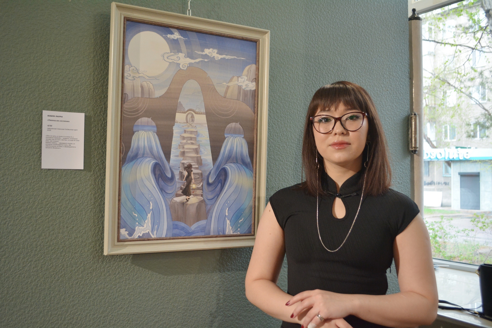 Для ещё одной участницы проекта Art Start, карагандинки Лауры Бобло, эта экспозиция вообще стала дебютом в выставочной деятельности. Она представила картину «Переход как состояние» в смешанной технике и digital-арт как переосмысление собственной ранней картины.