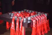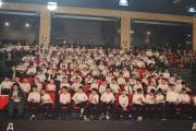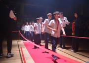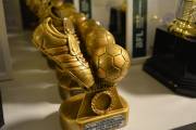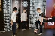 Юные футболисты в зале Центра бокса следовали на сцену по красной дорожке, в это же время на каждого из них надевали медали.