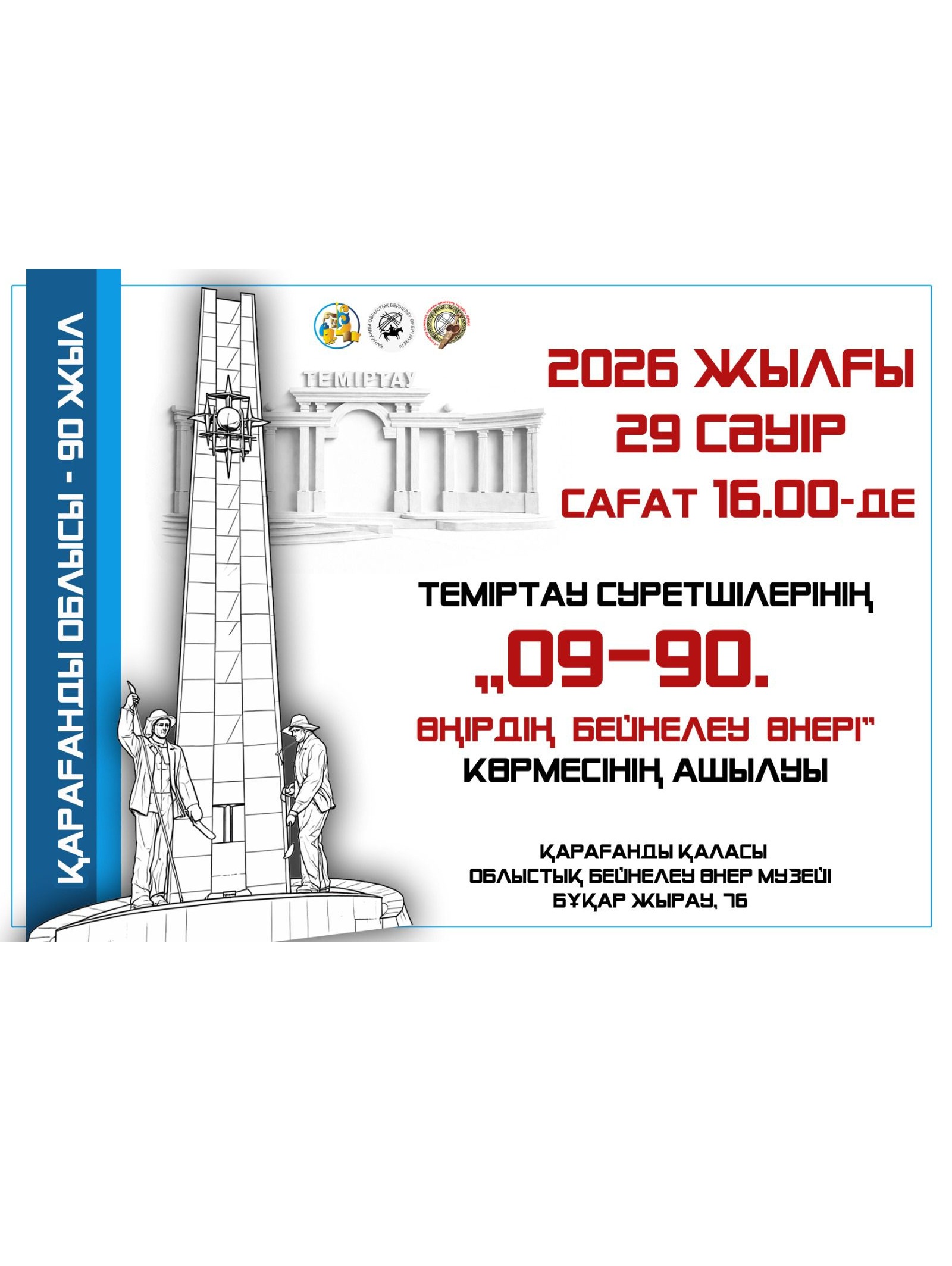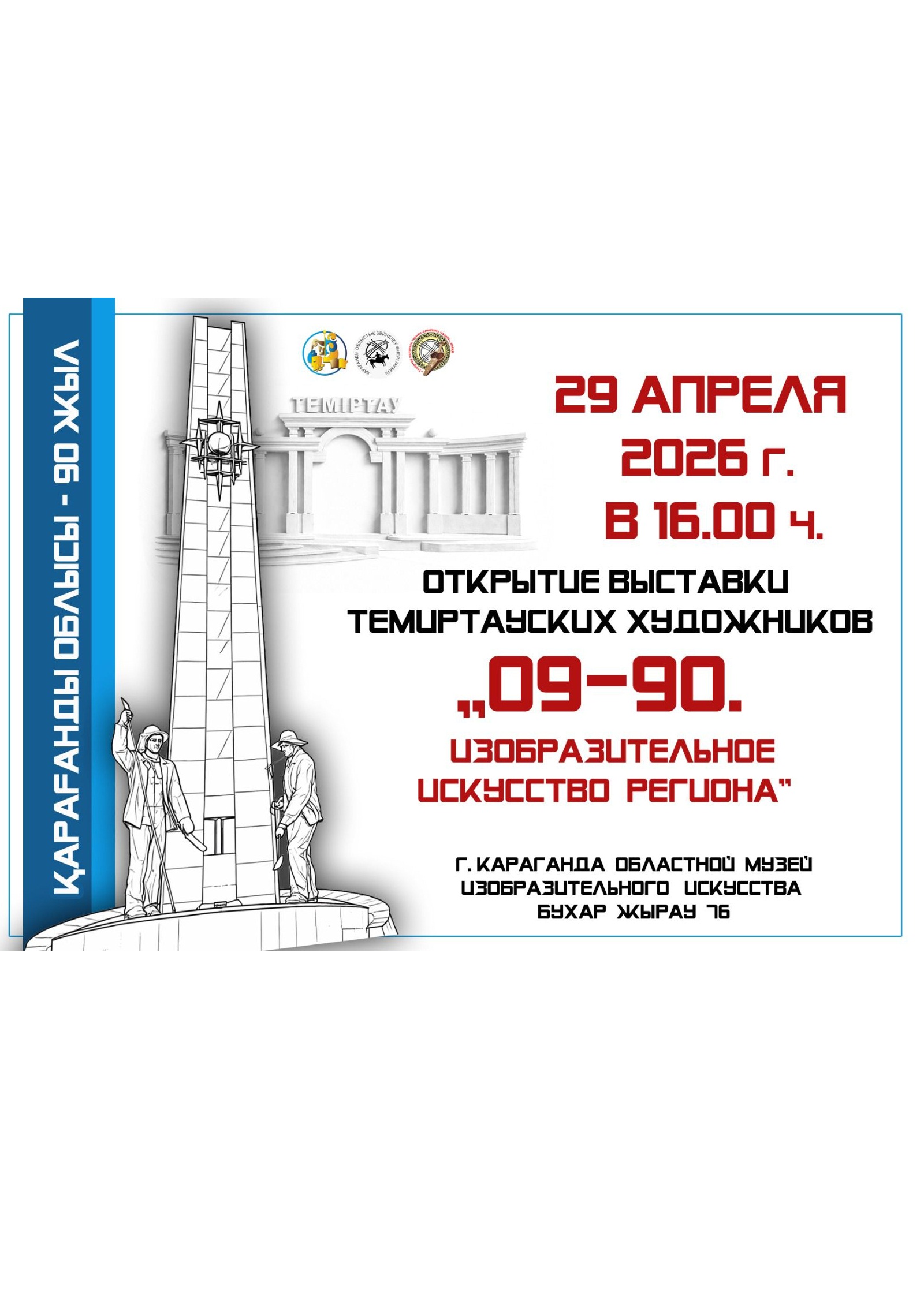 С 29 апреля по 13 мая в Карагандинском областном музее изобразительного искусства (пр. Бухар жырау, 76) откроют новую выставку из цикла «09-90» в честь 90-летия области. Здесь свои работы представят авторы из Темиртау, а открытие назначено на 16.00, сообщает корреспондент ekaraganda.kz.