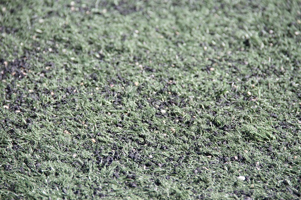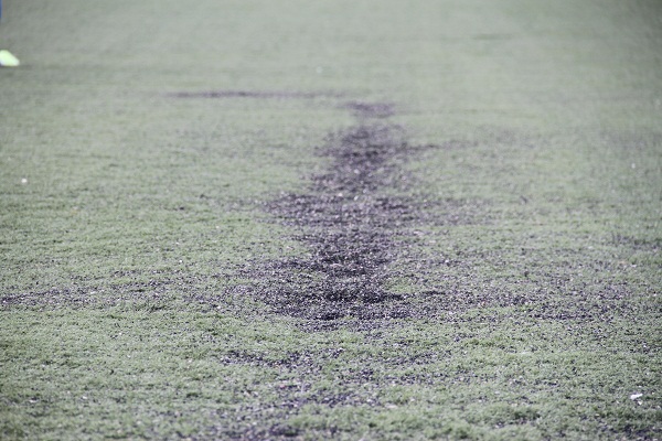 Продолжим разговор о чемпионе. Так вот, тренируясь на поле за западной трибуной стадиона, «Шахтер» играет матчи чемпионата в Темиртау. Почему нельзя тренироваться там же, спросите вы. Посмотрите на это покрытие!