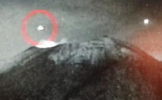 В сети недавно появилось видео, на котором неопознанный летающий объект садится на самое жерло вулкана Попокатепетль. Гора находится в 40 км от Мехико. На видео видно, как корабль летит по замысловатой траектории и со стороны он напоминает огненный шар.