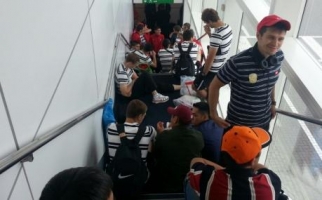 Около часа были вынуждены просидеть взаперти в душном и жарком коридоре карагандинские футболисты, ожидая вылета самолета. Причем, произошло это так - команду пригласили на посадку, и когда карагандинцы вышли из зала ожидания, дверь за ними заперли, а выход к трапу так и оставался закрытым. Ответов на вопросы, почему команду не выпускают на посадку, администрация аэропорта не давала, но и обратно в зал ожидания спортсменов уже не впустила. Лишь спустя длительное время изменить ситуацию удалось руководству клуба. До этого же казахстанцев продолжали держать в непроветриваемом и тесном помещении без каких-либо удобств.