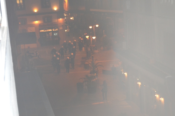 Тысячи людей протестующих вышли на центральные улицы Салоников. В связи с чем протестуют неизвестно. Многочисленные кафе и бары опустели буквально за пятнадцать минут. Полицейские пускают слезоточивый газ. Раз за разом звучат хлопки от взрывов дымовых шашек. Город патрулируют полицейские.