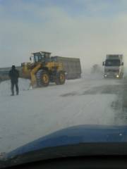 В тот же день на трассе республиканского значения Алматы-Екатеринбург в беду попал гражданин Российской Федерации, который управляя грузовой автомашиной МАН в условиях плохой видимости, не справился с управлением и вылетел в кювет. Для того, чтобы освободить машину из снежного заноса полицейские остановили двигавшуюся в попутном направлении грузовую автомашину КамАЗ и вытащили МАН из заноса. В тот же день еще две грузовых автомашины марки Вольво совершили опрокидывания. Водители не пострадали. Всем водителям благодаря активным действиям полицейских своевременно была оказана помощь и все они смогли продолжить свой путь.