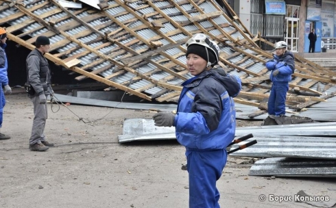 Снесло крышу со здания ночного клуба на привокзальной площади. Фото