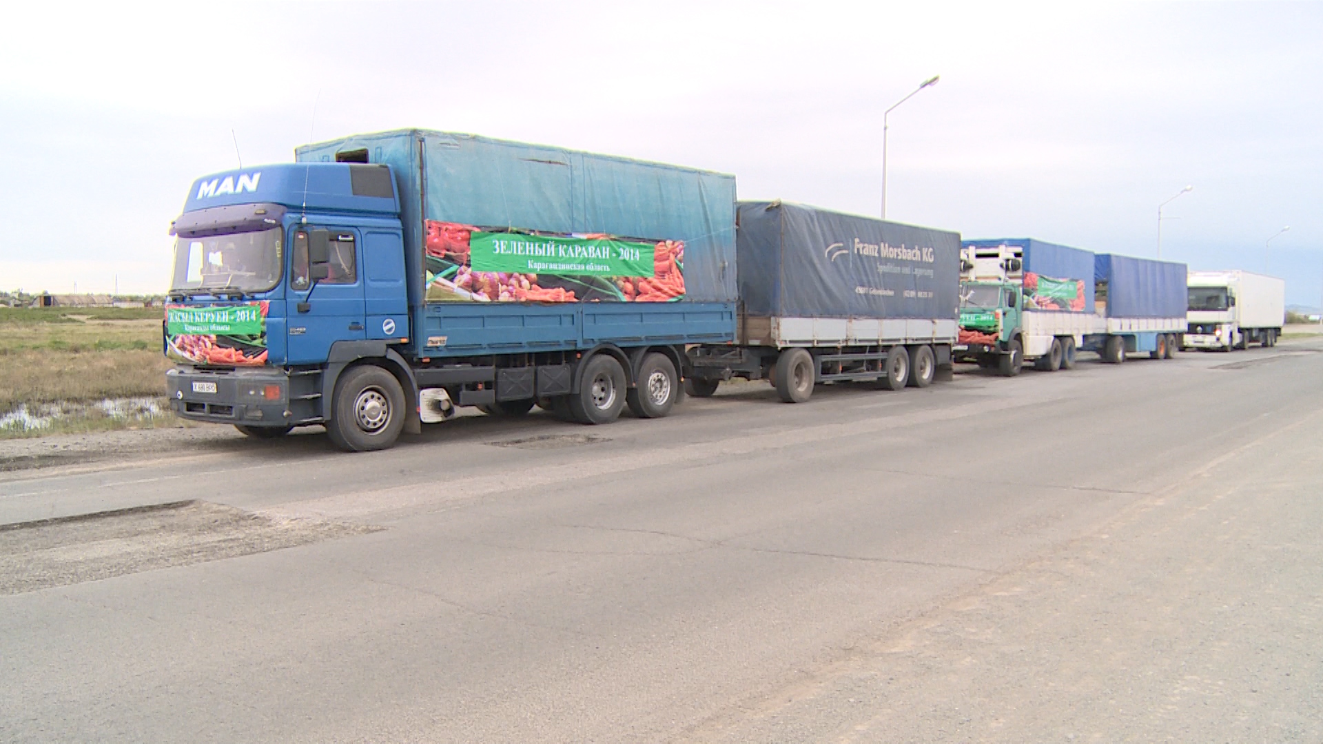 - В Карагандинской области два грузовика увязли в размытой дороге