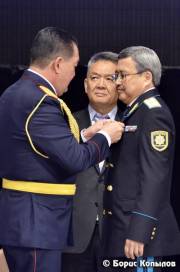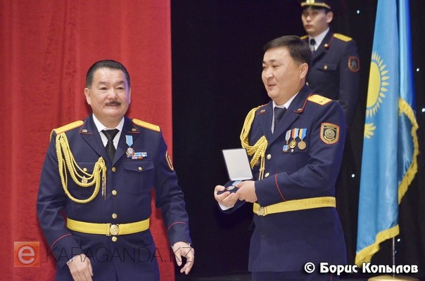 Кроме того, по поручению Председателя Агентства по борьбе с экономической и коррупционной преступностью Республики Казахстан он вручил юбилейную медаль «Қазақстан қаржы полициясына 20 жыл» начальнику Департамента финансовой полиции по Карагандинской области Канату Артыкбаеву.