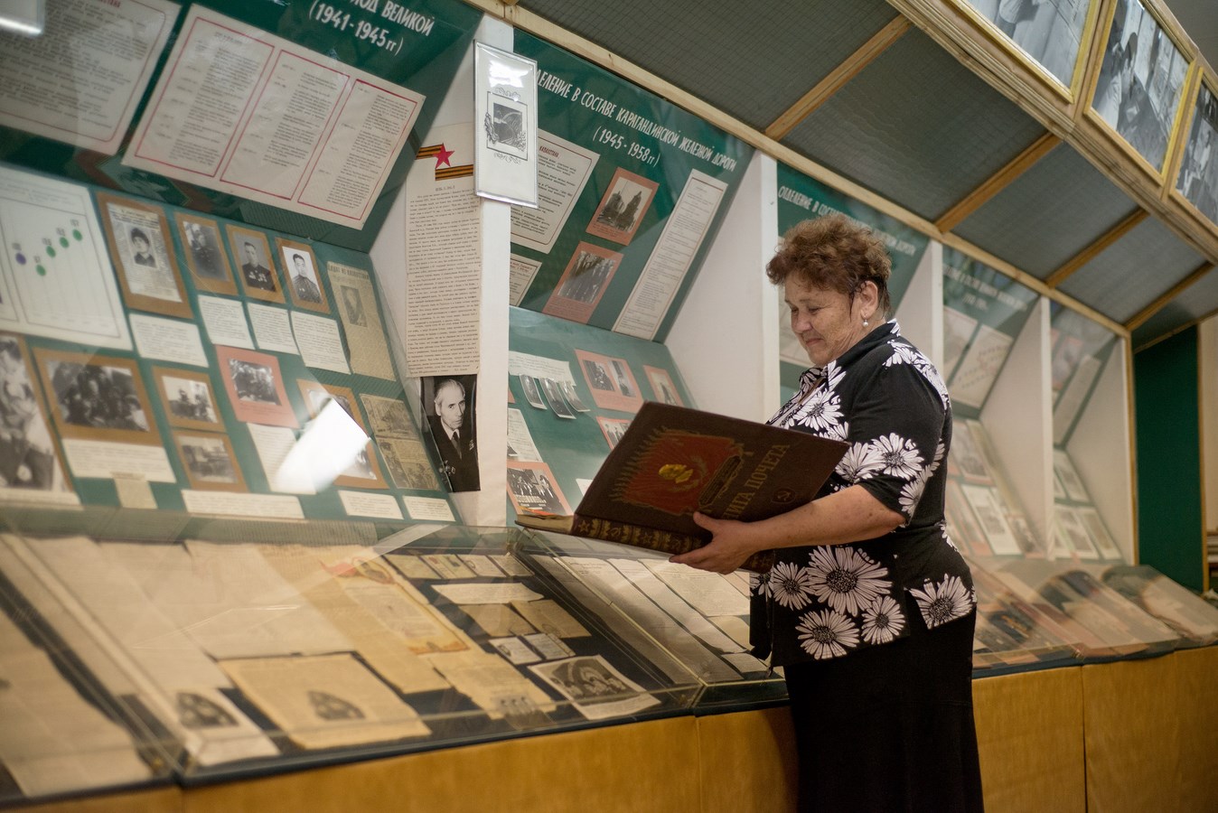 За сохранность ценных экспонатов отвечает председатель совета ветеранов Карагандинского отделения дороги Домрина Галина Ивановна. До ухода на пенсию женщина работала начальником административно-хозяйственного отдела Карагандинского отделения дороги.