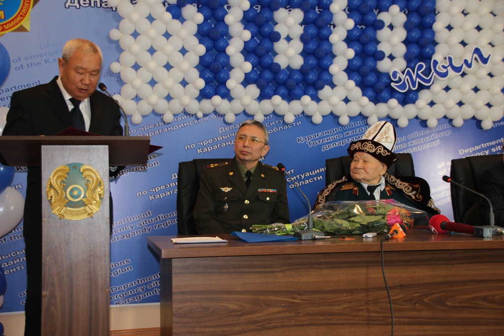 Юбиляра также поздравил председатель Совета ветеранов органов по ЧС Карагандинской области Есентаев М.С.