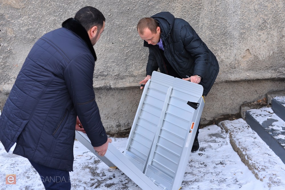 Александр Михайлович говорит, что с приходом новой команды, которая руководит городом, акимат города стал похож на бюро добрых услуг. Сегодня мужчина получил складной переносной пандус, который был заказан из России и выполнен по всем международным стандартам. Инвалид-колясочник говорит, что это для него пропуск на свободу. Пандус подарила компания ТОО «ЮТЕКС».