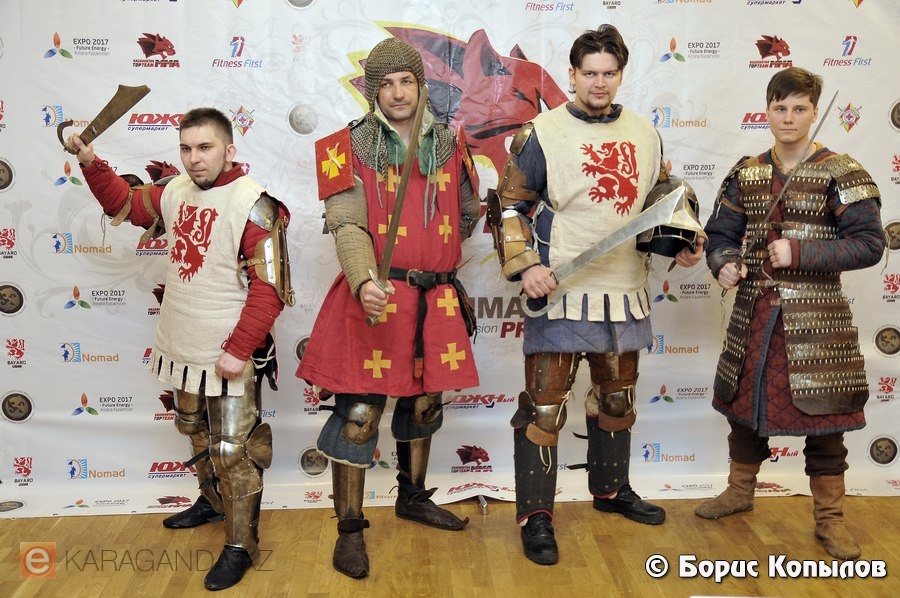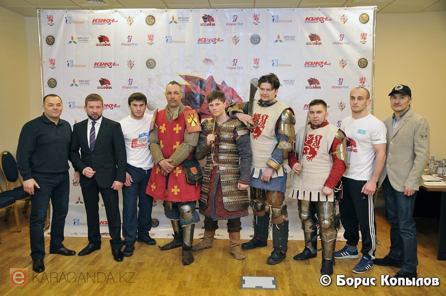 Взвешивание участников профессионального боя и участников исторического средневекового поединка. Фото