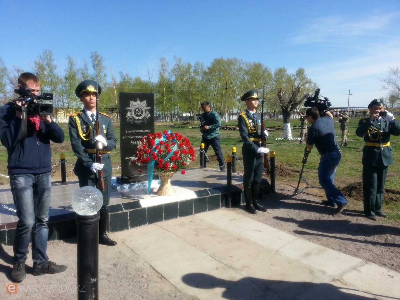 В преддверии празднования Дня Защитника Отечества и 70-летия Победы в Великой Отечественной войне на плацу военной части №31775 собрались военнослужащие Карагандинского гарнизона, ветераны Великой Отечественной войны, труженики тыла, представители государственных органов, силовых структур, учащиеся средних специальных учебных заведений и выпускных классов, члены семей военнослужащих, родственники призывников.