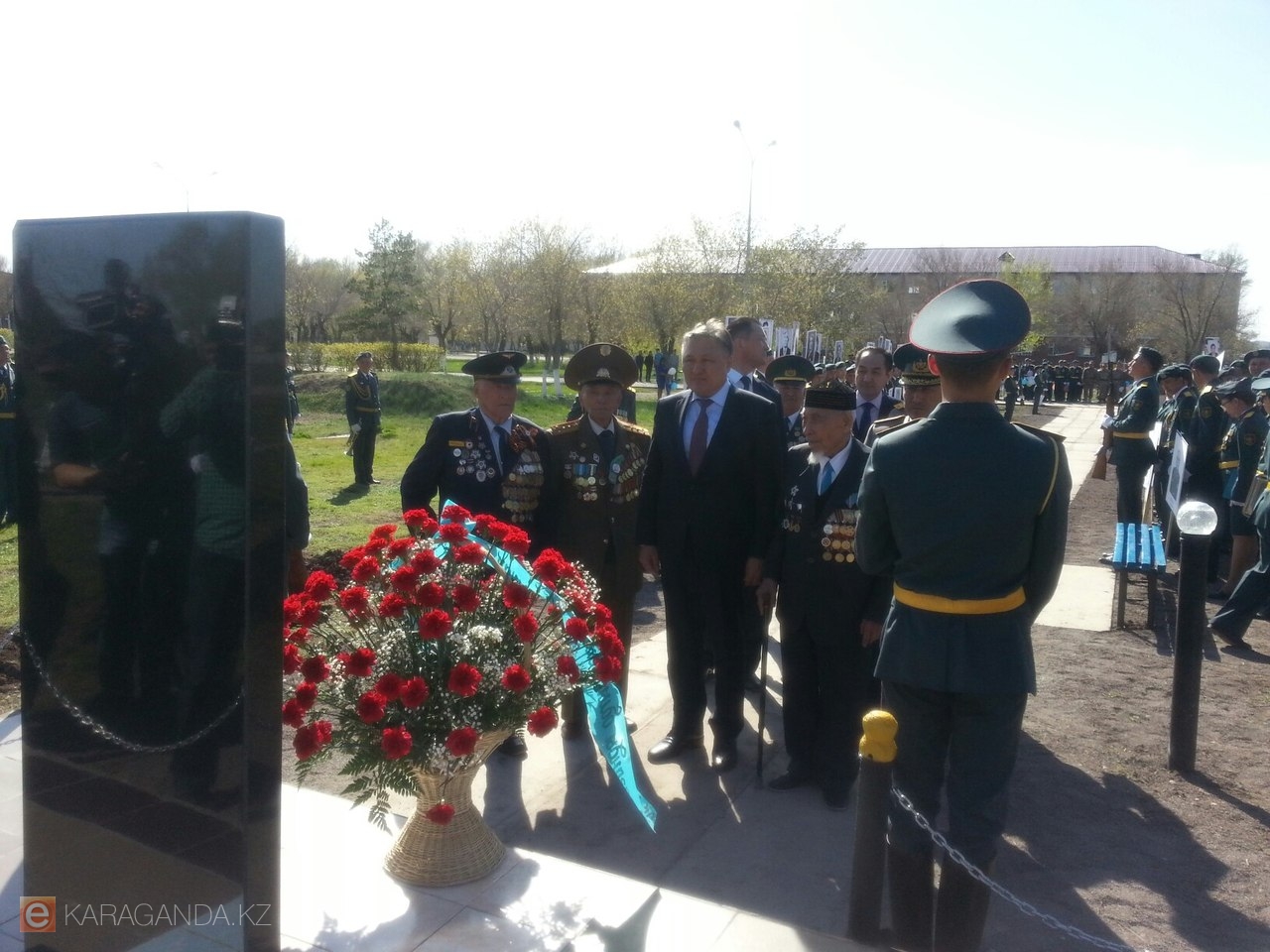 Во время торжественного мероприятия военные в парадной и полевой форме, воспитанники Республиканской военной школы имени Талгата Бегельдинова стройными рядами промаршировали по плацу и отдали честь ветеранам Великой Отечественной войны.