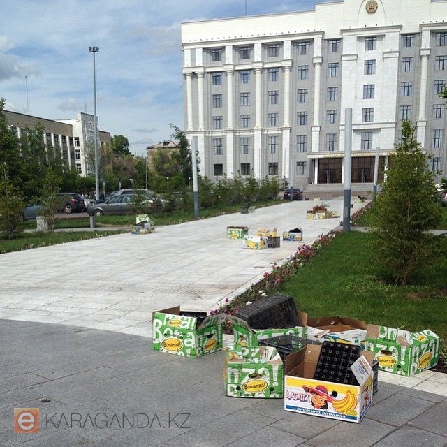 Караганда - удивительный город, на улицах которого можно встретить грустного Микки Мауса и веселых спортсменов, а возле акимата вас удивят коробки от бананов.
