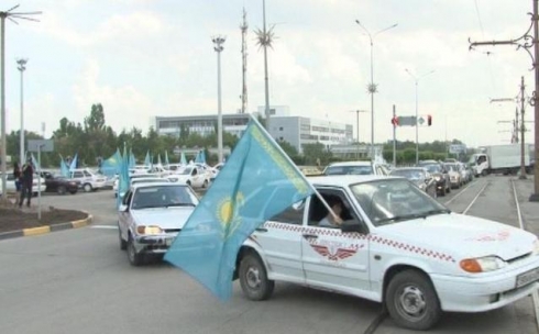 По улицам Темиртау проехала автоколонна с Государственными флагами