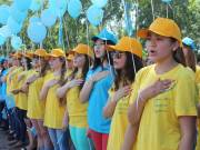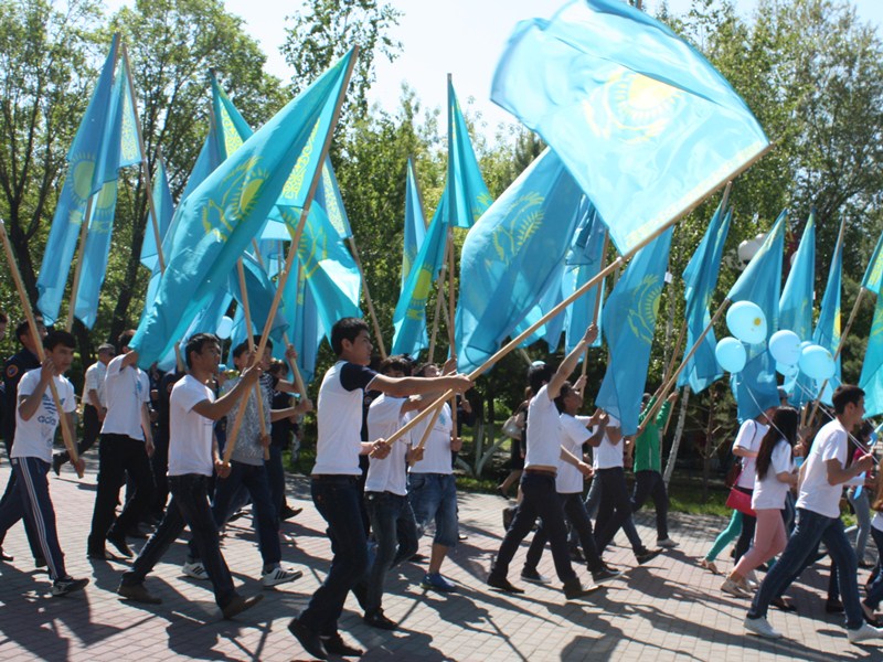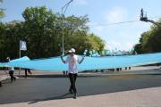 В Караганде в День госсимволов РК состоялось молодежное шествие с большим полотнищем Флага