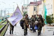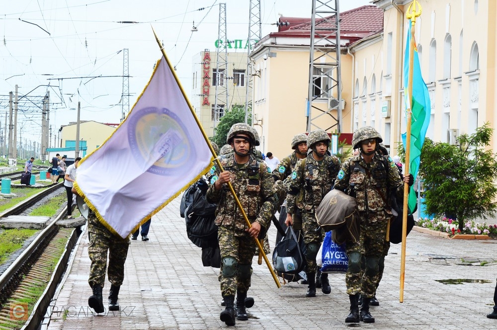 На железнодорожный вокзал Караганды прибыли участники Первого республиканского военно-патриотического сбора «Айбын»