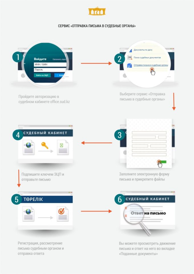 Верховным судом Республики Казахстан внедрён сервис «Судебный кабинет», который предоставляет пользователям возможность, не выходя из дома или офиса, подать в суд исковое заявление, заявление, жалобу, обращение, отзыв, встречный иск или обращение.