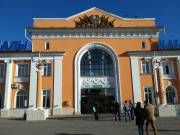 Вокзал преобразился. Теперь здание приобрело яркий осенний цвет. Цвет логотипа ekaraganda.kz.