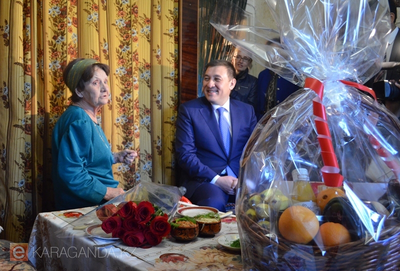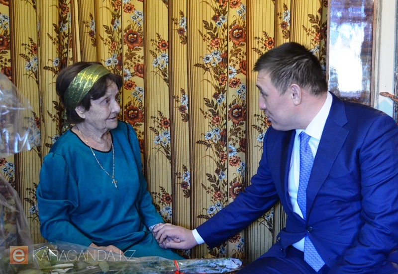 В День пожилых людей аким Караганды лично поздравил труженицу тыла с 90-летием