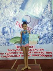 Еще одна карагандинка Дильназ Байленова поднялась на пьедестал чемпионата Казахстана, заняв третье место в упражнениях с мячом.