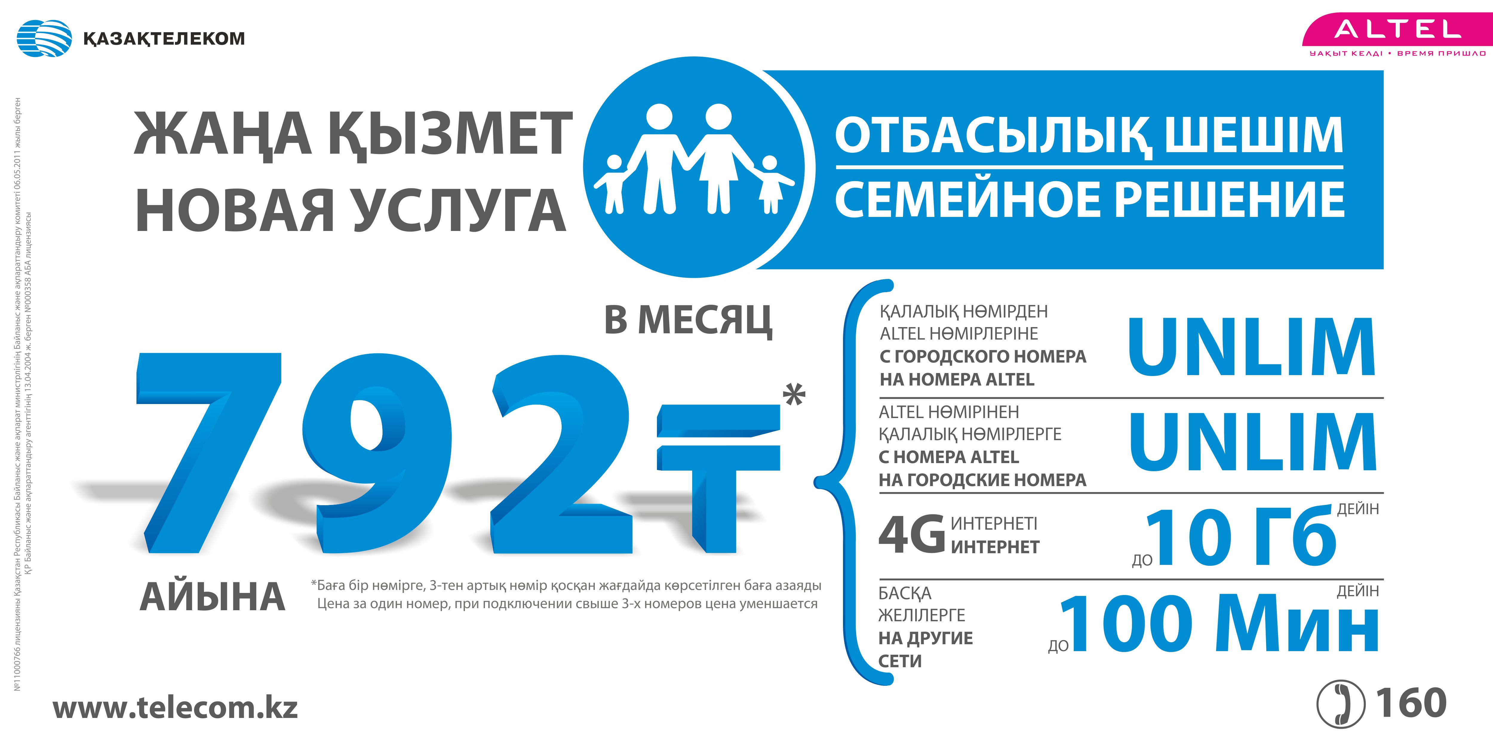 С 1 ноября 2015 года для абонентов АО «Казахтелеком» действует новый пакет услуг «Семейное решение».