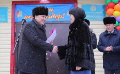 Аким области поздравил жителей села Баймырза и воспитателей с открытием детского дошкольного учреждения и вручил подарок - интерактивную доску.
