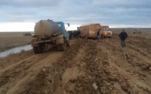 Порядка 15 машин увязли в грязи на трассе в Карагандинской области