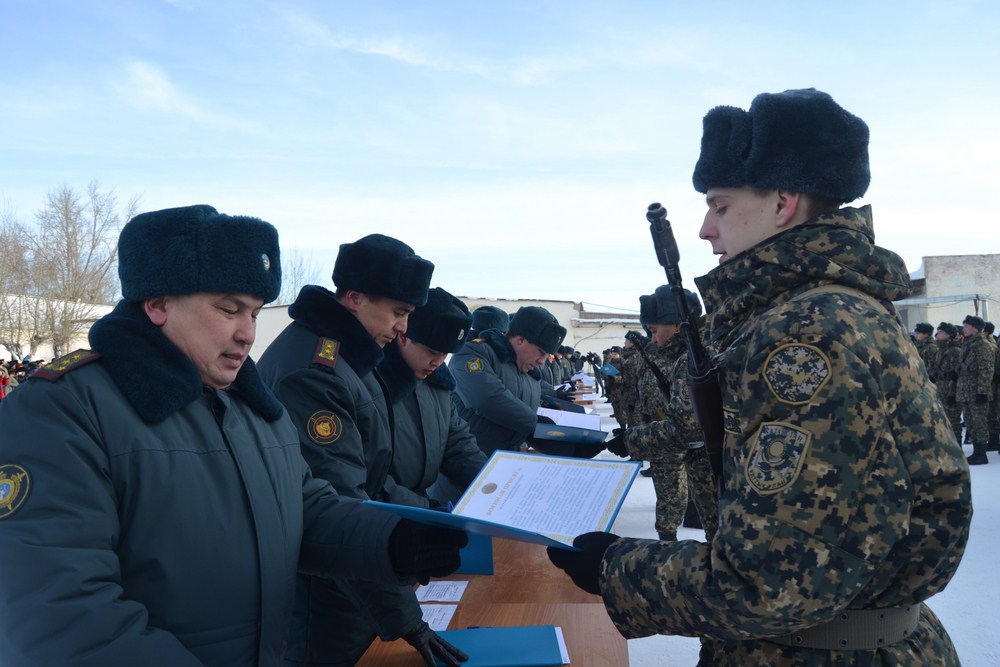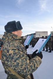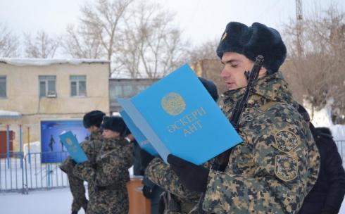 В рамках празднования 24 - й годовщины образования Национальной гвардии Республики Казахстан в воинской части 6505 состоялся ритуал приведении молодого пополнения к военной присяги с участием Акима Карагандинской области Абдибекова Н.К.