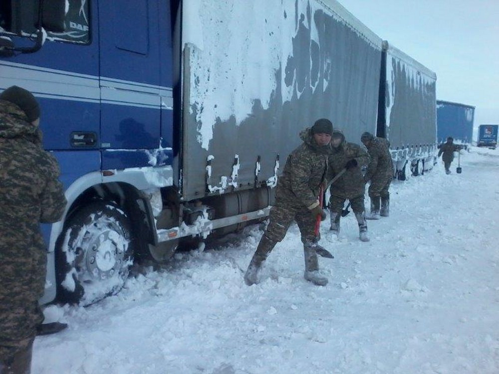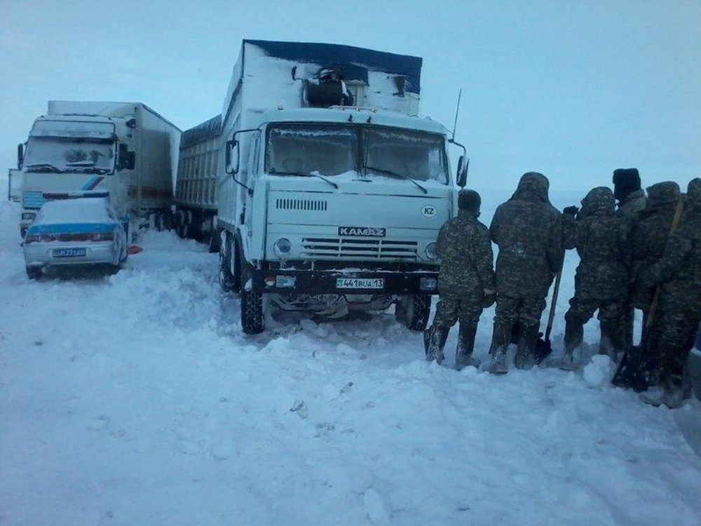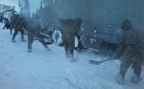 Военнослужащими воинской части 52859 Национальной гвардии проведена огромная работа по эвакуации людей и автотехники, оказавшихся в снежном плену на трассе между участками Алматы – Қарағанды.
