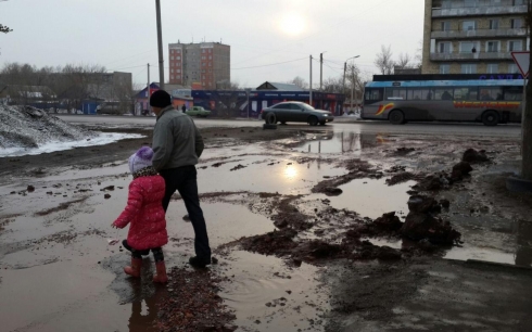 Проезд между домами №48 и №49, что находятся в 19 микрорайоне Майкудука, в период межсезонья больше похож на озеро, нежели на дорогу. Всё потому, что асфальтного покрытия данный участок не имеет, а обильное таяние снега и осадки превращают дорогу в трясину.