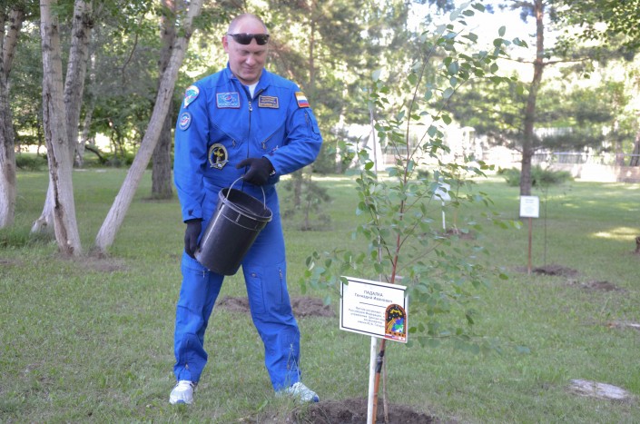 "При посадке россиянин рассказал сотрудникам гостиницы, что для него это не первое дерево. Дескать, у космонавтов есть такая традиция, везде, где они бывают, сажают деревья. Со слов Романенко, его саженцы растут в России, Казахстане и США. А его первое дерево растет на "Байконуре". Также он поделился, что его дочь хочет пойти по его стопам. А он, в свою очередь, пошел по стопам своего отца", - добавила сотрудница гостиницы.