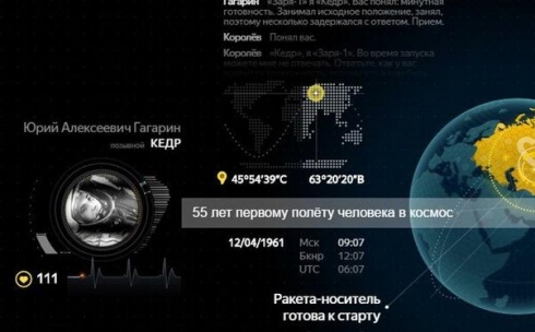 В честь 55-летия первого полета человека в космос "Яндекс" провел "прямой эфир" полета Юрия Гагарина на специально созданной странице, передает Today.kz.