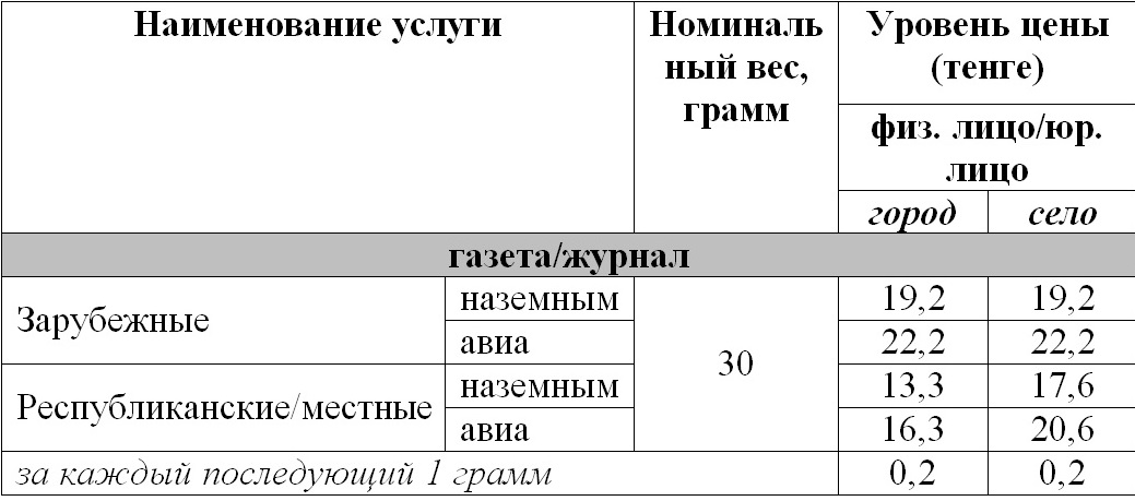На основании мотивированного заключения КСИИ МИР РК от 14 марта 2016 года №30-30-3/1706-и, с 1 июля 2016 года вводятся в действие новые тарифы на услугу распространения периодических печатных изданий по подписке.