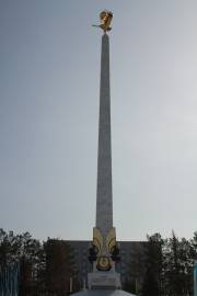 Сильный ветер развернул беркута на стеле Независимости на 45 градусов