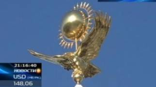 В Караганде беркут на стеле Независимости возле здания областного акимата превратился во флюгер, сообщает телеканал КТК.