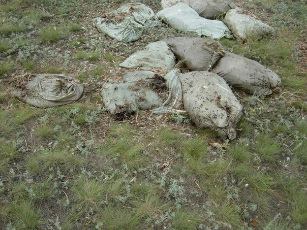 Житель Пришахтинска, колесивший на мотоцикле по степным просторам близ упомянутого района Караганды, случайно обнаружил гниющие останки птиц, упакованные в мешки и коробки.