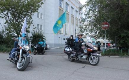 Известный казахстанский байкер Дмитрий Петрухин в рамках мотопробега в поддержку олимпийцев приехал в Караганду, куда привез эстафетный казахстанский флаг, передает корреспондент BNews.kz.