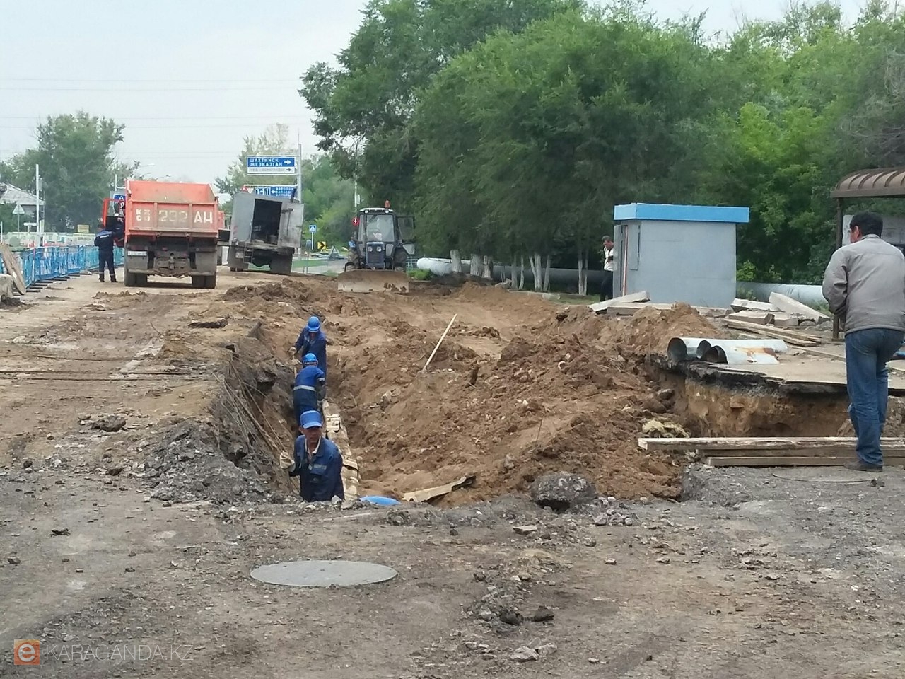 В настоящее время силами бригады ТОО «Қарағанды Су» выполняются работы по замене разрушенного участка главного канализационного коллектора. После окончания работ будут выполнены работы по благоустройству и асфальтированию дорожного покрытия.