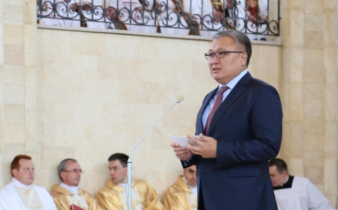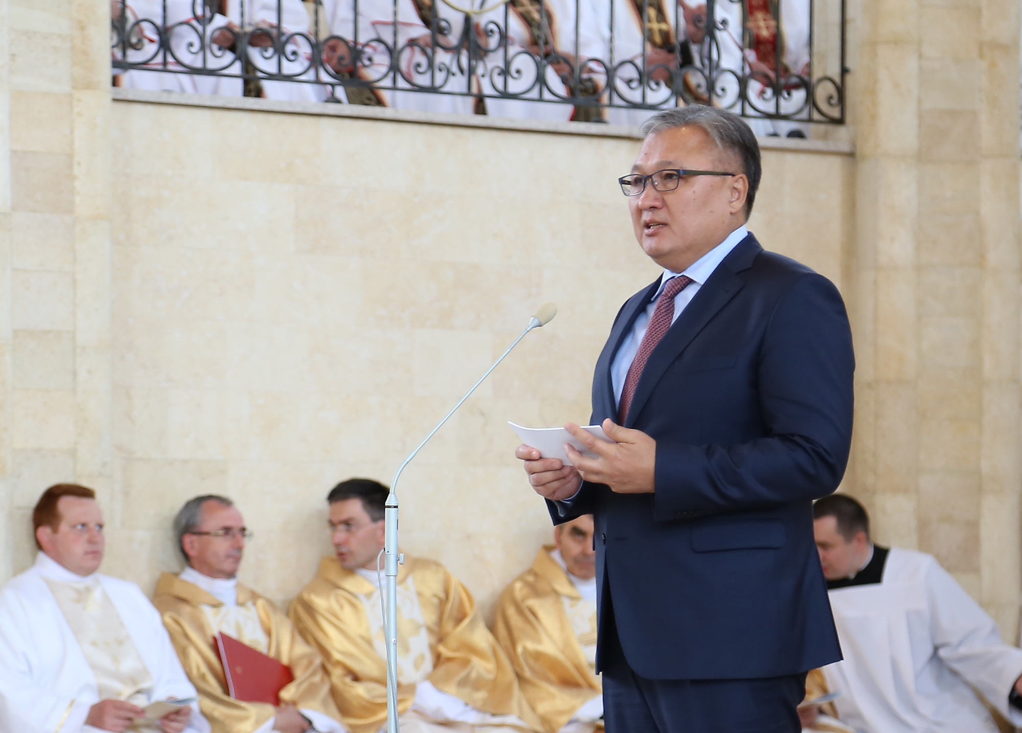 Аким Карагандинской области Абдибеков Н.К. поздравил католиков с важным мероприятием, также председателем Комитета по делам религий Министерства культуры и спорта РК Г. Шойкиным было зачитано поздравление руководителя Секретариата Съезда лидеров мировых и традиционных религий – председателя Сената Парламента Республики Казахстан К. Токаева, приветственное послание от имени Президента Республики Польши Анджея Дуды зачитал шеф кабинет Президента Республики Польша министр Адам Квятковский.