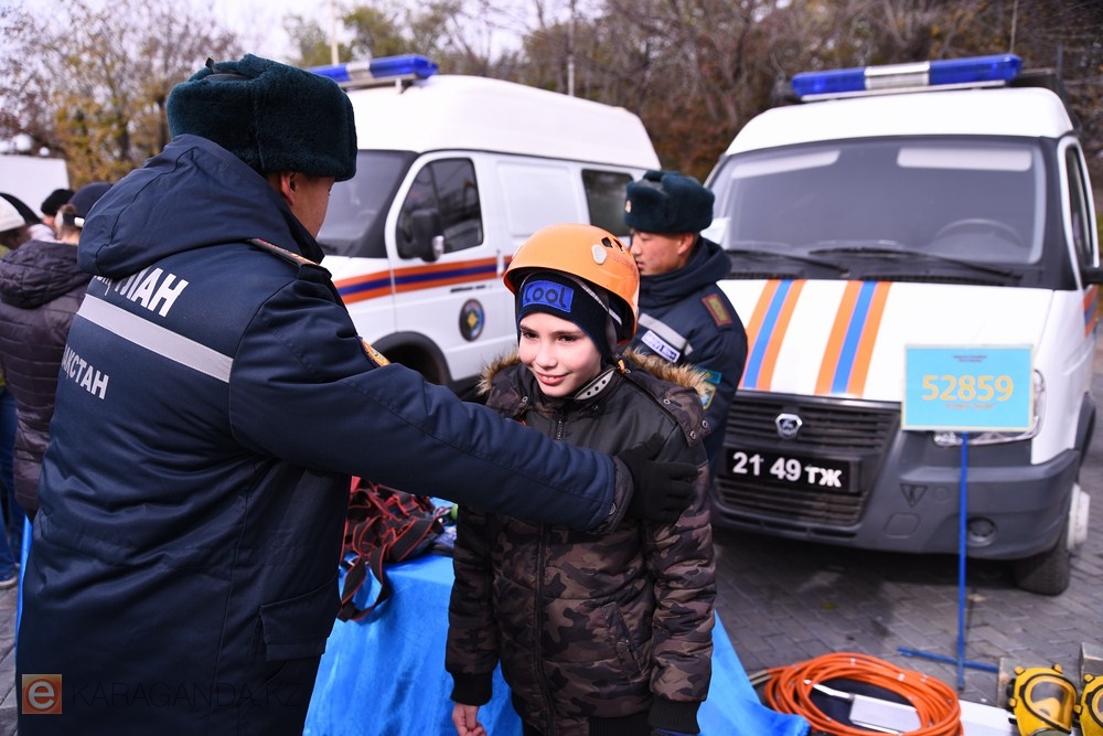 На выставке была представлена аварийно-спасательная техника Службы пожаротушения и аварийно-спасательных работ, Оперативно-спасательного отряда, Центра медицины катастроф, а также воинской части 52859 Национальной гвардии МВД РК.