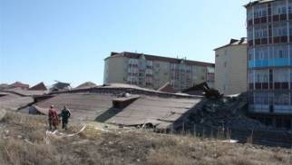 Как сообщил аким, работа комиссии выявила, что уцелевшие дома в микрорайоне также являются аварийными. При этом, ометил он, "это не значит, что в этих домах нельзя жить".