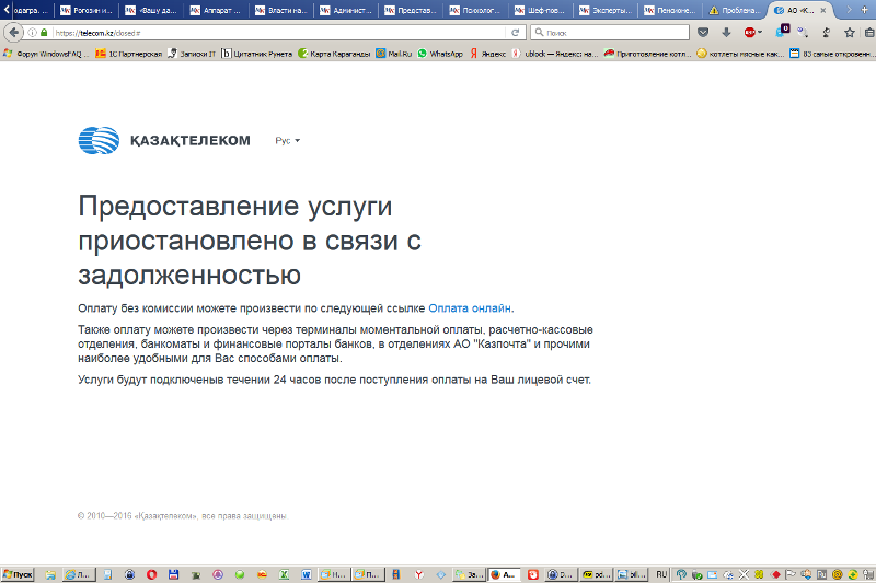Напомним, оплата услуг АО «Казахтелеком» производится в срок до 25 числа текущего месяца.