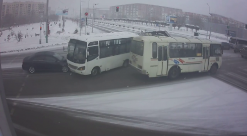ДТП произошло в воскресенье, 13 ноября. На кадрах запечатлен регулируемый участок дороги, пересечение улицы Муканова и проспекта Республики. Автобус сначала сталкивается с грузовой машиной, а затем таранит легковой автомобиль. На видео также заметно, что после ДТП грузовик и легковушка получили значительные повреждения.
