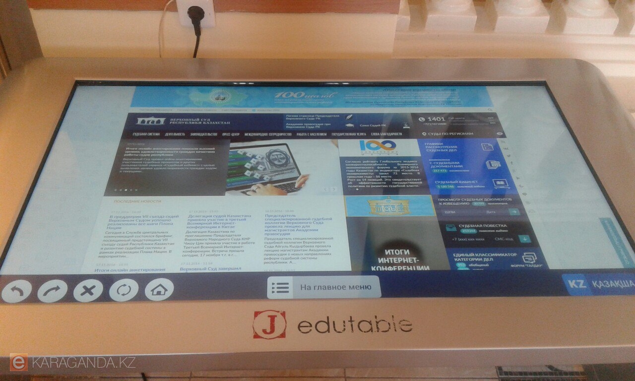 Знакомство с «Төрелік» продолжилось в фойе. Там разместилась интерактивная доска. Используя умное оборудование, можно войти в судебный кабинет, ознакомиться с судебными документами, узнать график рассмотрения дел – в общем, найти всю необходимую информацию. Кроме того, в «Төрелік» интегрирована система аудио-, видеофиксации.