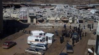 Как сообщалось, 1 апреля в доме N7 жилого комплекса "Бесоба" от фундамента до крыши пошла трещина шириной от 10 до 15 см, здание дало крен. Комиссия, созданная по приказу акима города, вынесла решение, что жить в этом доме опасно. 2 апреля жителей срочно эвакуировали. Утром 6 апреля 5-8 подъезды дома N7 рухнули. Без крыши над головой остались жильцы нескольких десятков квартир.